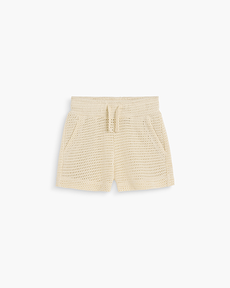 „Der Wechsel geschieht über den von Ihnen bereits erwähnten Strick, der viel wertiger aussieht. Das Fully-Fashion-Gestrickte wird allerdings so überbetont, dass man die Strickoptiken mit einer weithin erkennbaren Struktur trägt, vor allem Poloshirts, die eines der erfolgreichsten Produkte in der Menswear des letzten Sommers waren und auf 10 Kilometer Entfernung als Strickpolo wahrnehmbar sein sollten. Passend zu dieser Übertreibung sind wir nun auch weg von diesen Videokassetten-Wegbring-Shorts aus Jersey hin zu den zu Strickpolos dazugehörigen Shorts, die ganz klar als gestrickt oder gehäkelt erkennbar sein müssen und fast schon eine Topflappen-Optik haben. Diese Überbetonung soll eine möglichst große Distanz zwischen dem Ghetto-Look und dieser neuen Ästhetik schaffen …“