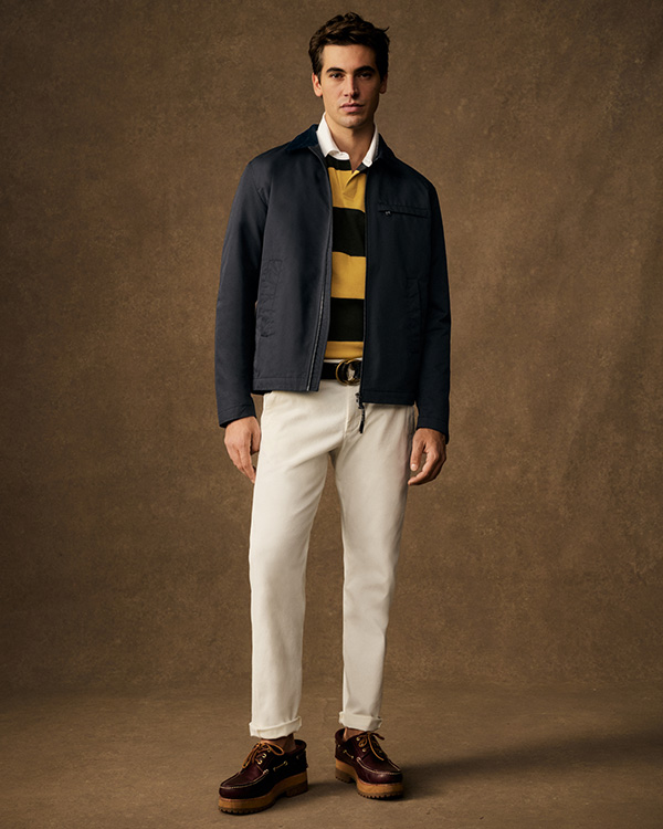 „Auch bei diesen Männern sehe ich einen extremen Taste Freeze. Sie tragen etwas zu enge Hemden und Hosen, sind also bei diesem Look hängen geblieben, bei dem alles sehr körperbetont sein muss. Dabei gehen sie definitiv auf Nummer sicher und sind extrem konservativ. Entweder sieht man diesen Typus in sehr klassischer Sportswear, Kleidung mit großen Logos – echt oder fake – oder er orientiert sich an Steve McQueen und Sean Connery. Letztere Männer landen dabei schnell im Heritage, das extrem begrenzt ist mit einem sehr eingefahrenen Kanon von Klassikern, die in diesen Kreisen akzeptabel sind: BARACUTA-Harrington-Blousons, SELVAGE-Denims, Edelstahl-Uhren von Rolex oder OMEGA und einer Sonnenbrille von Ray-Ban oder Persol – Marken und Produkte, die es seit 50, 60, 70 Jahren gibt und die immer weiter perpetuiert werden.“