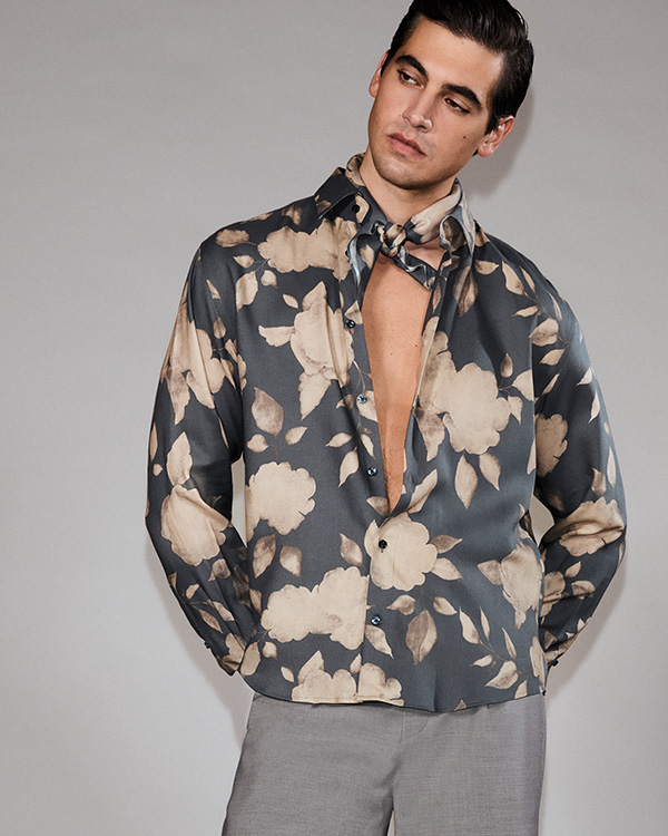 Carl Tillessen: „Den Übergang zu dem femininen Männertypus würde ich als gesellschaftliche Baustelle bezeichnen, die ein bisschen ist wie Stuttgart 21 oder der Berliner Flughafen: Sie dauert länger, es geht nicht kontinuierlich voran und das Ziel wird nicht stetig weiterverfolgt; was aber auch so vorhersehbar war. Es hat erstaunlich mühelos funktioniert, dass Männer die klassisch feminin konnotierten Farben angenommen haben. Ganz klischeehaft waren das Rosa, aber auch andere Pastelltöne wie Mauve, Flieder und das übrige Violett-Spektrum, sehr feminine Farben, die ganz selbstverständlich als Zeichen der Modernität getragen wurden. Seinerzeit hatte man das Bedürfnis, sich vom Negativbild des alten, weißen Mannes abzugrenzen und sich progressiv zu zeigen. Das wurde auch über das Tragen bestimmter Muster wie floraler Prints getan. In der dritten Phase sind wir nun bei Materialien angekommen: Männer entdecken fließende, glänzende Stoffe für sich, was wir schon bei Kurzarmhemden aus Waschseiden oder viskosigen Qualitäten gesehen haben; Mutige tragen auch Hosen, Blousons oder sogar einen ganzen Anzug aus solchen Materialien. Die Hemden waren also nur das Einfallstor für eine Entwicklung, die sich inzwischen etabliert hat und die für die Männergarderobe sehr viele spannende, neue Möglichkeiten bietet.“