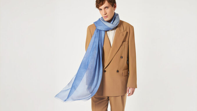 „Der Anzug ist seit Corona ziemlich stabil. Wenn Sie mich fragen, ob wir noch in 100 Jahren klassische Anzüge tragen, gehe ich davon aus, dass dies wahrscheinlich selten der Fall sein wird. Aber es wird ein sehr langsamer Prozess sein, bis unsere Kleidung weniger förmlich geworden ist. Insgesamt kann man also immer noch eine Freude am Anzug sehen. In den ersten 20 Jahren dieses Jahrtausends wurden Anzüge propagiert, an denen alles schmal ist – Hose, Schultern, Revers … Jetzt schlägt das Pendel in die entgegengesetzte Richtung aus: Wir sehen breitere Hosen, Schultern und vor allem breite Revers und Krawatten, größere Hemdkragen … Das hat alles ein bisschen mehr Fläche und damit verbunden gibt es eben zweireihige Sakkos mit breiten, aufsteigenden Revers. Diese neuen Anzüge sind gerade erst in der Masse angekommen und bereiten den Männern aktuell sehr viel Freude.“