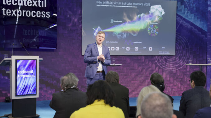 Die Foren der Techtextil und Texprocess rücken bei den kommenden Messen in Frankfurt zentrale Zukunftsthemen der Textilindustrie in den Fokus. Vom 21. bis 24. April 2026 diskutieren Experten aus Industrie, Forschung und Wirtschaft über technologische Entwicklungen und strategische Antworten auf globale Herausforderungen, teilt die Mwesse Frankfurt mit. Im Mittelpunkt stehen Themen wie KI-gestützte Produktionsprozesse, digitale Fertigungslösungen, zirkuläre Technologien und biobasierte Hochleistungsmaterialien. „Zukunftsfähigkeit entsteht nicht im Alleingang. Sie braucht starke Partnerschaften, weltweite Netzwerke und den offenen Dialog über neue Technologien, Strategien und Geschäftsmodelle“, sagt Sabine Scharrer, Director Brand Management Technical Textiles & Textile Processing.