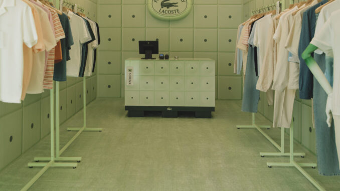 Lacoste präsentiert im Concept Store Berlin-Mitte die „Polo Factory“, eine immersive Installation, die bis Ende August 2026 das Poloshirt der Marke in den Mittelpunkt stellt. Die Ausstellung zeigt die Entstehungsphasen des Poloshirts – vom Stricken und Färben bis zur Konfektion – und verbindet industrielle Elemente mit Design.